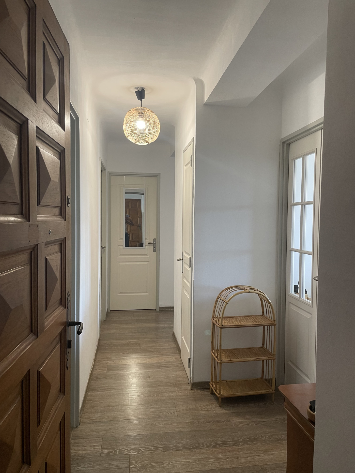 Cet appartement se compose d'une grande entrée desservant une cuisine avec loggia fermée, d'un séjour avec une terrasse offrant une vue dégagée sur le golfe d'Ajaccio, de deux grandes chambres, ainsi que d'une salle de bain et d'un WC séparé.