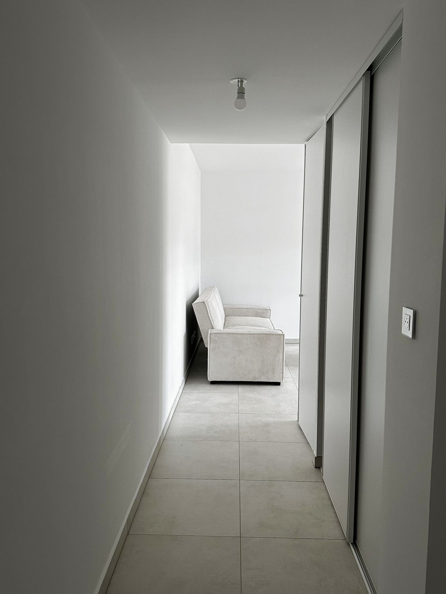 Cet appartement est loué avec un garage privatif en sous-sol, sécurisé par une porte principale.