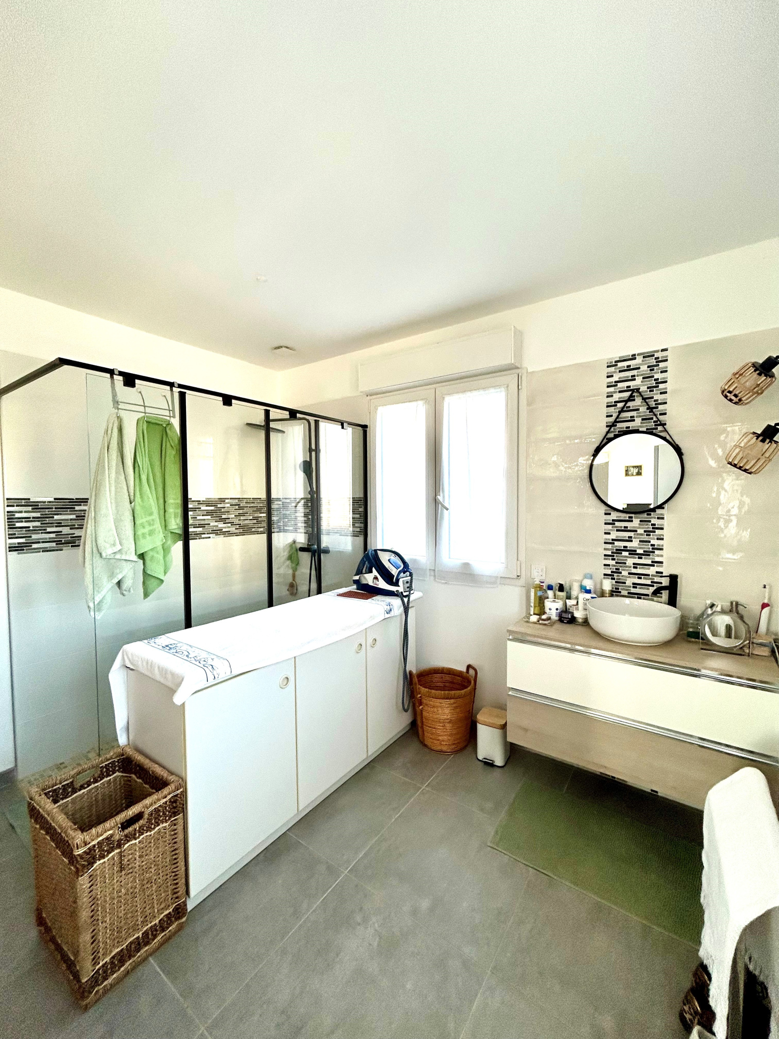 Une grande buanderie se situe à l'entrée de la maison et un garage de 60 m² complète ce lot.
